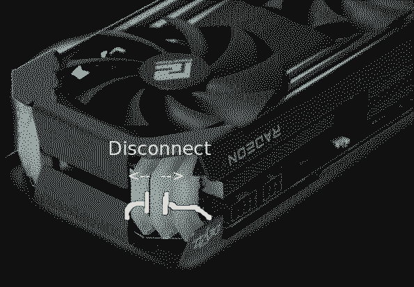 As a disclaimer, if you use any of this information to make any changes to your own card, I am not liable for anything that goes wrong. There is a connector on the board that powers the fans. It is a connector that is vertical/perpendicular to the card, and near the connector the cable splits out into blue, green, yellow, black. Unplugging this will disable your fans, so make sure to avoid doing so unless that is your intent. It is not shown in the diagrams in this article