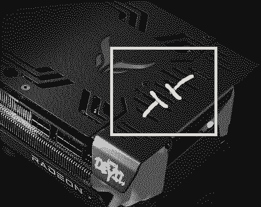 On the front edge of the card (usually points toward the front of a PC case) are some stripes with very bright LEDs. These are connected with an Y/extension to Section 3's power cable. How I disabled them: this one was tricky. The extension cable for the power (at least on my card) had its connector right behind the plastic LED diffusers. I attempt to show this in the diagram. It had just enough slack that I was able to pry it out of the edge of the card and disconnect it. I happened to damage one side of the cable in the process and just wrapped it with electrical tape. I never plan on using these LEDs so I went into it knowing this was a possible outcome and was fine with it.
